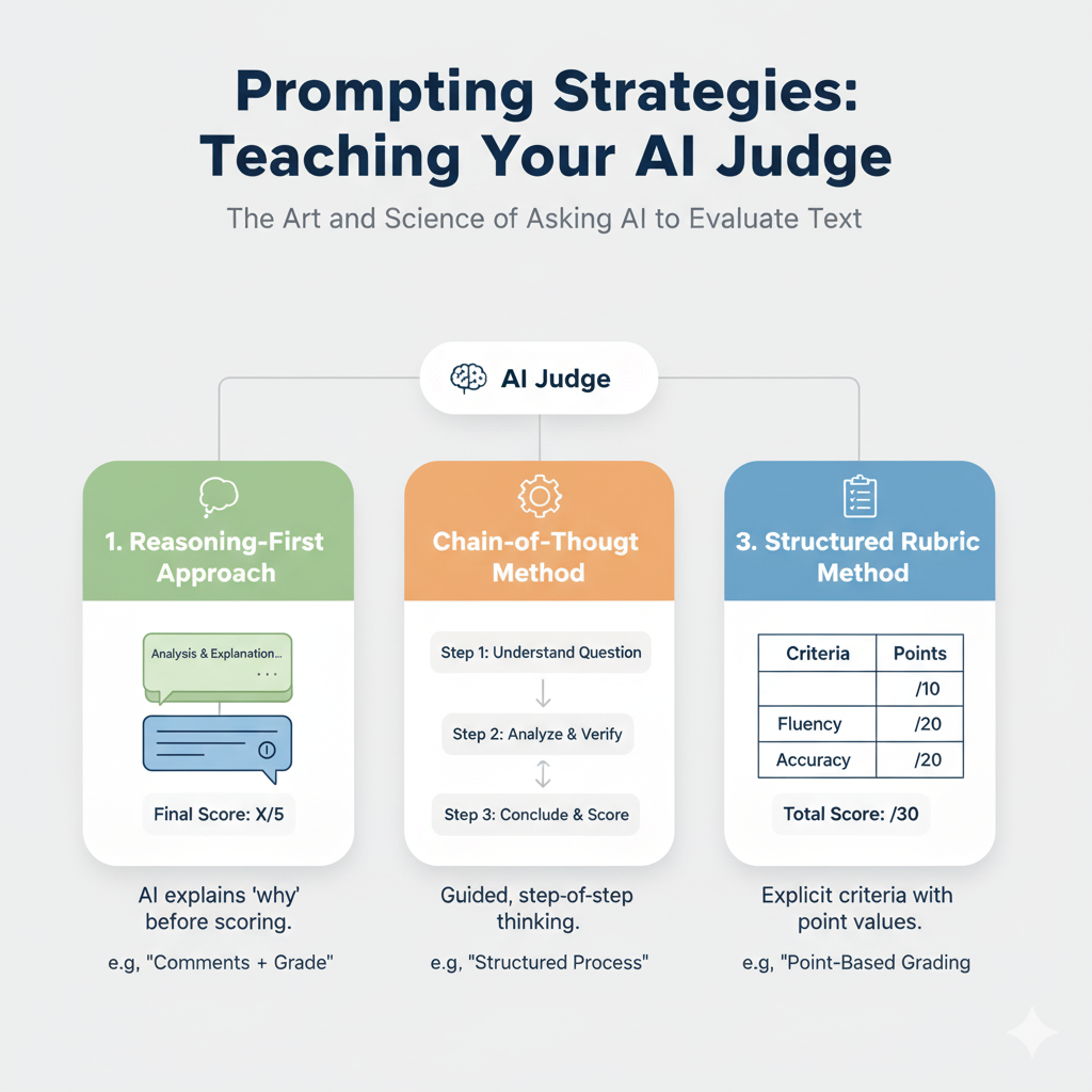 When we ask an AI system to evaluate text, there are three main approaches we can use: